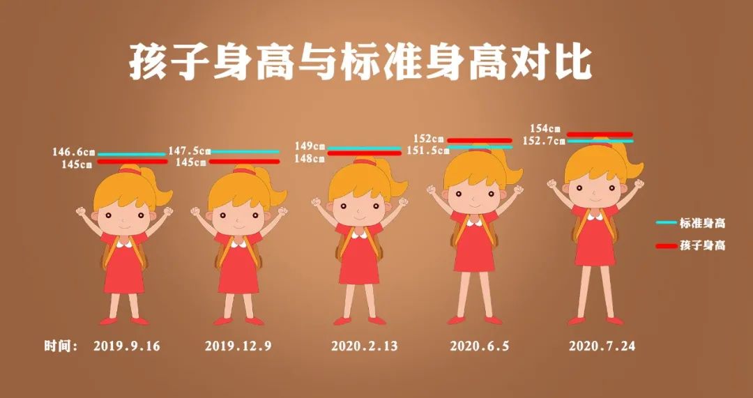 距離與家長初次溝通到現(xiàn)在已達(dá)8個多月,孩子的身高已經(jīng)長到152cm(11.9歲女孩標(biāo)準(zhǔn)身高在151.5cm),哦買噶!比標(biāo)準(zhǔn)身高還高出了0.5cm,不僅成功追趕,而且反超。