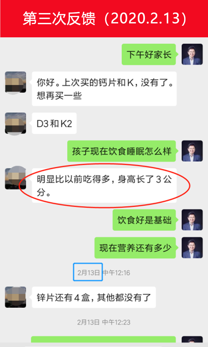 從家長的反饋情況來看,孩子的飲食狀況變好,飯量增多,身高也增高了3cm,也就是目前身高在148cm(11.5歲女孩標(biāo)準(zhǔn)身高在149cm),身高差距已經(jīng)縮短為1cm,效果還是非常顯著的。